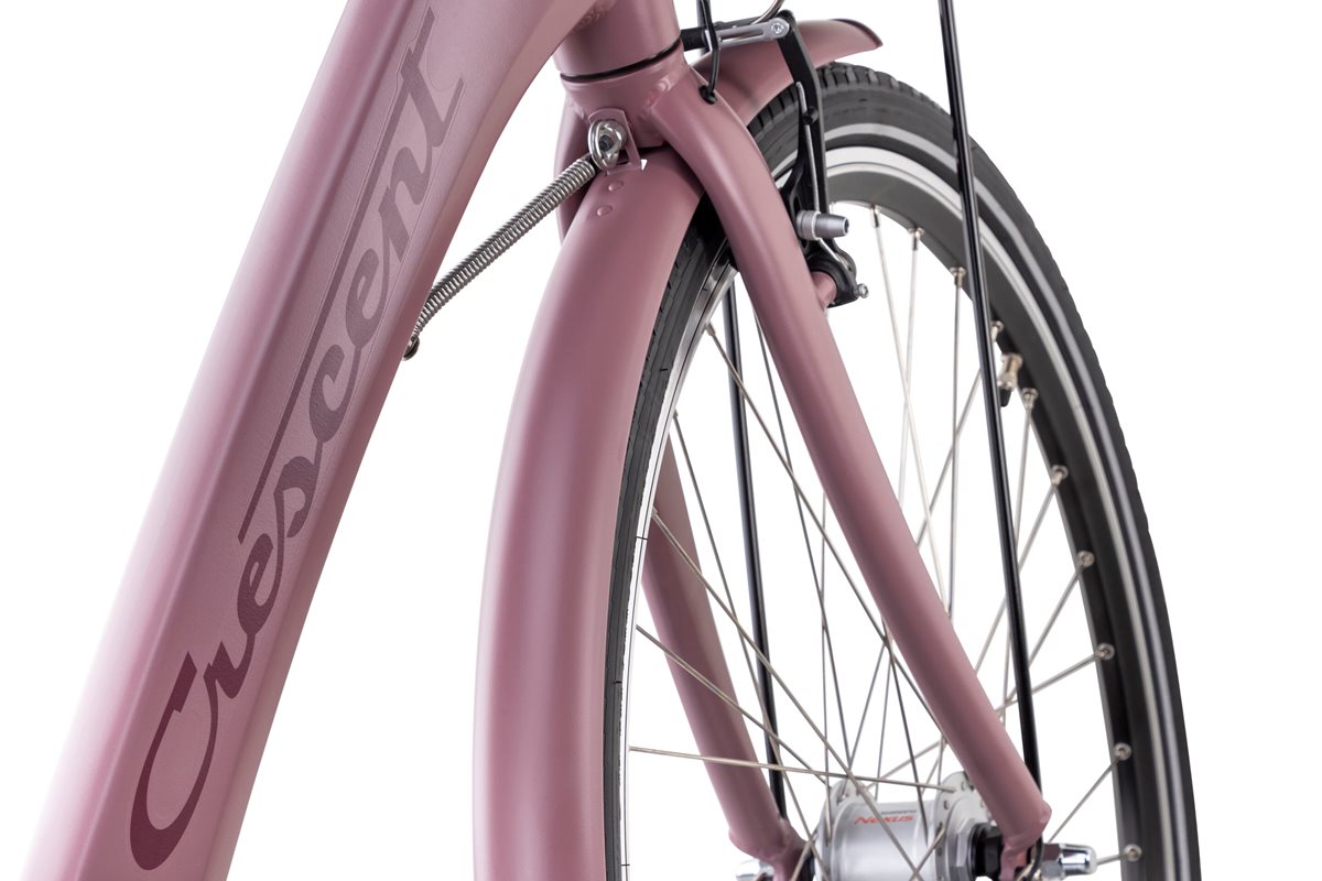 Med ett lågt insteg tar du dig enkelt upp i sadeln. Och väl där sitter du som en kunglighet; bekvämt i den ergonomiskt uppbyggda sadeln och upprätt med god överblick över dina medtrafikanter. Dina händer vilar skönt på styrets komforthandtag och med mjuka breda däck rullar du behagligt fram på de flesta underlag. Denna cykel har fotbroms samt v-broms fram. Cykelkorg i aluminium med plastbotten ingår liksom lås, stöd och belysning. En traditionell damcykel som är lika populär hos killarna i familjen! Pakethållaren är integrerad i ramen och utrustad med en klickfunktion där du enkelt sätter fast väska eller korg. Köp till från Spectras nya Pronto-serie.