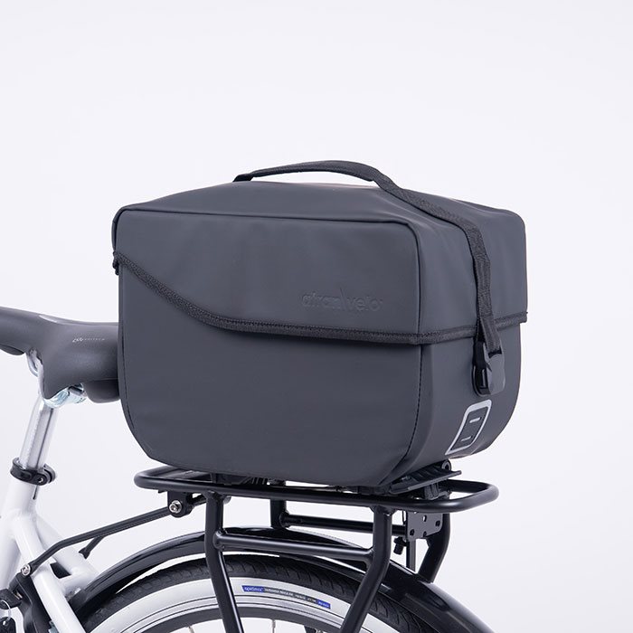 Elegant och vattentät toppväska med integrerat AVS-system som enkelt fästs på pakethållaren.